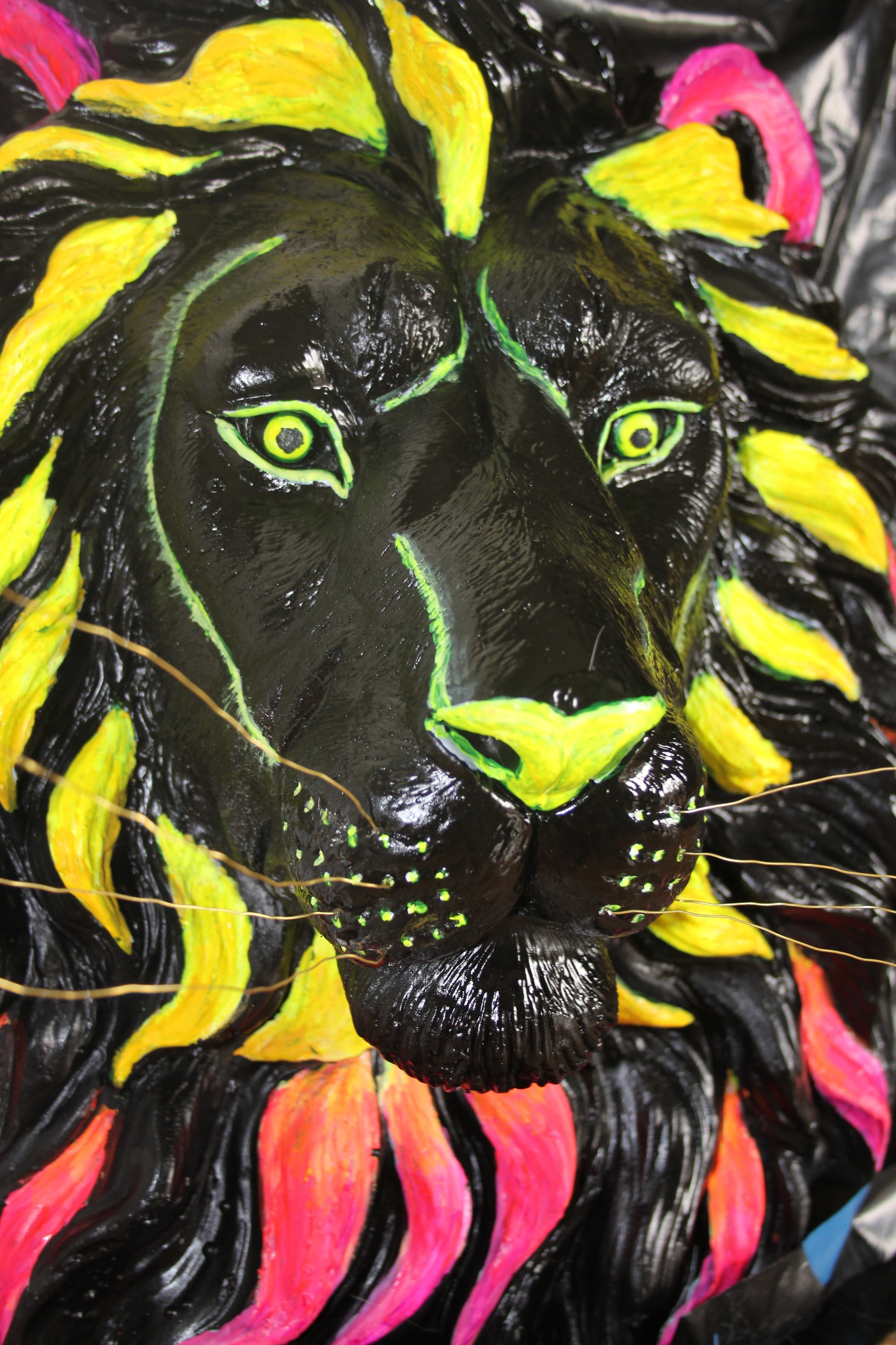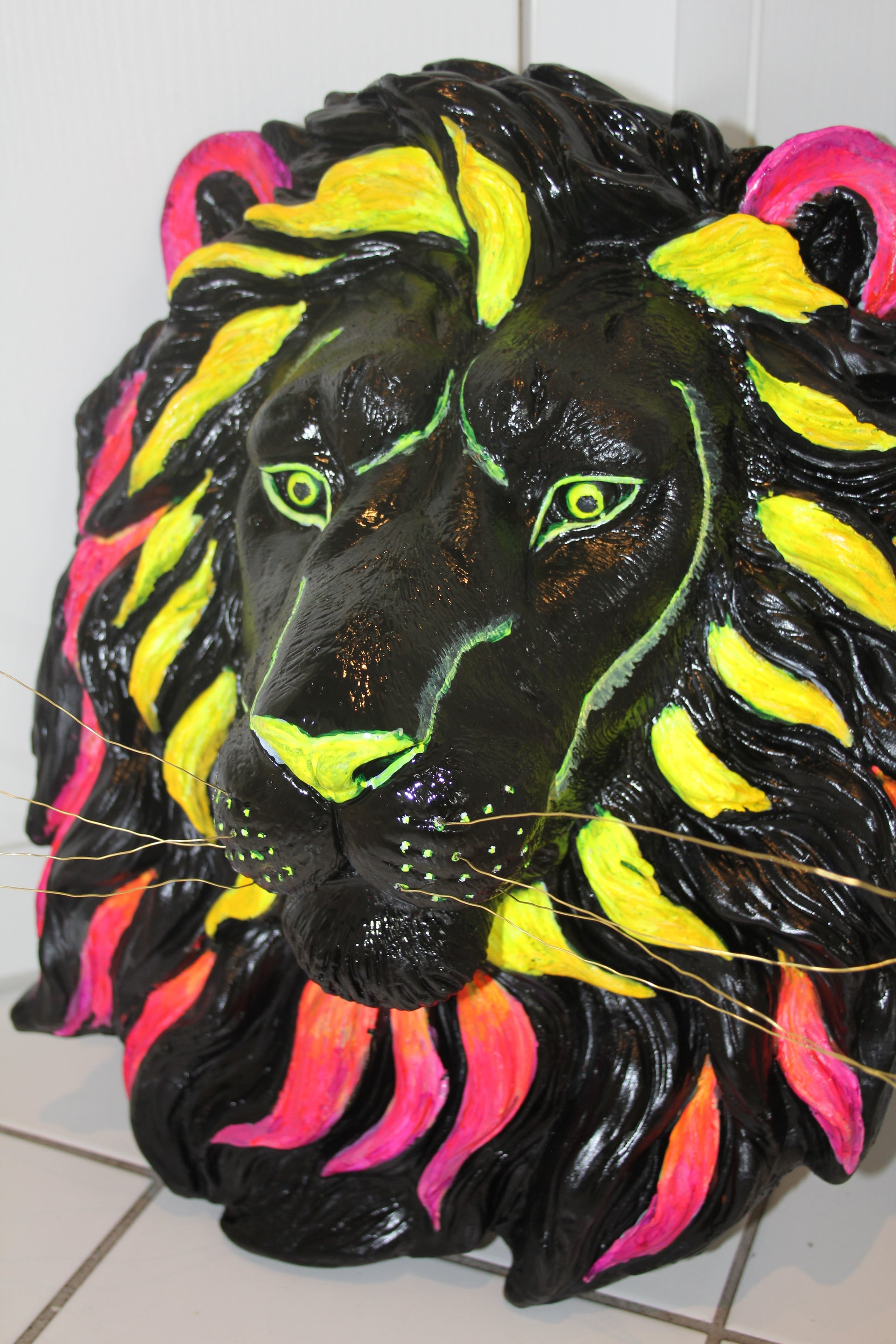 · Finish: Tiefenschwarz | Knallige Neon-Akzente | Goldene Schnurrhaare
